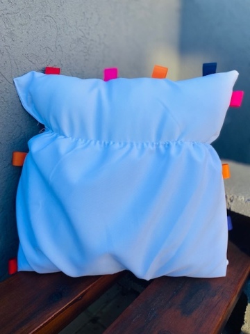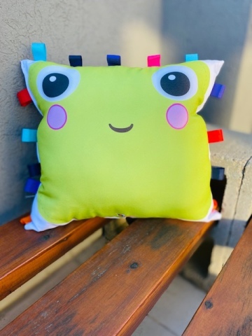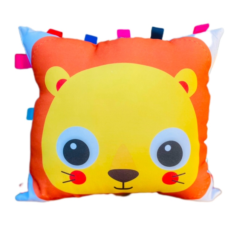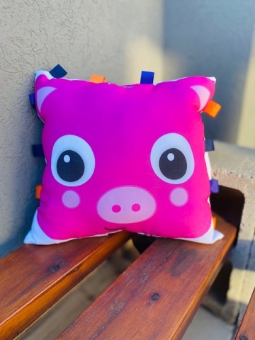Almoahadon relleno con vellon ciliconado, cintas y bolsillo para guardar el pijama. Disponible sapo, chancho, lobo, tigre, leon y vaca.
