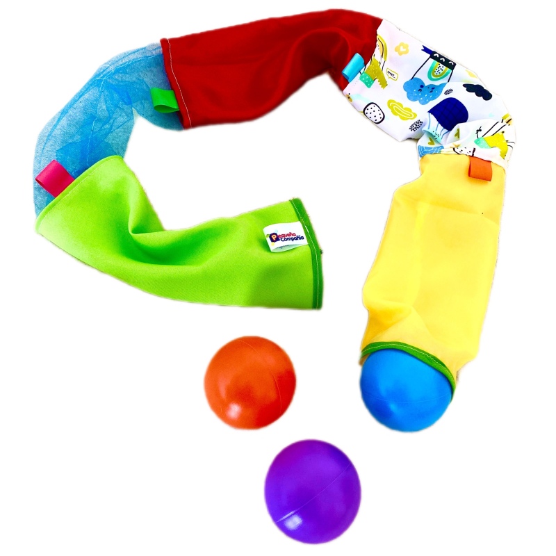 Mini tunel con texturas y colores distintos. incluye 3 pelotas.