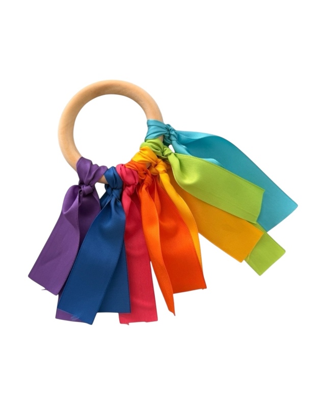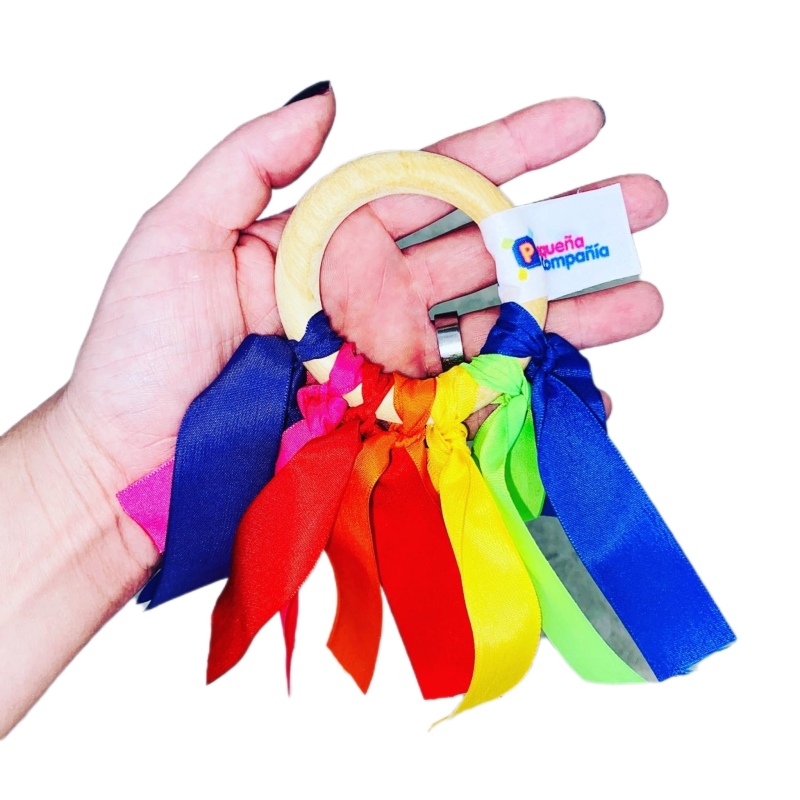 Mordillo de madera natural con cintas multicolor