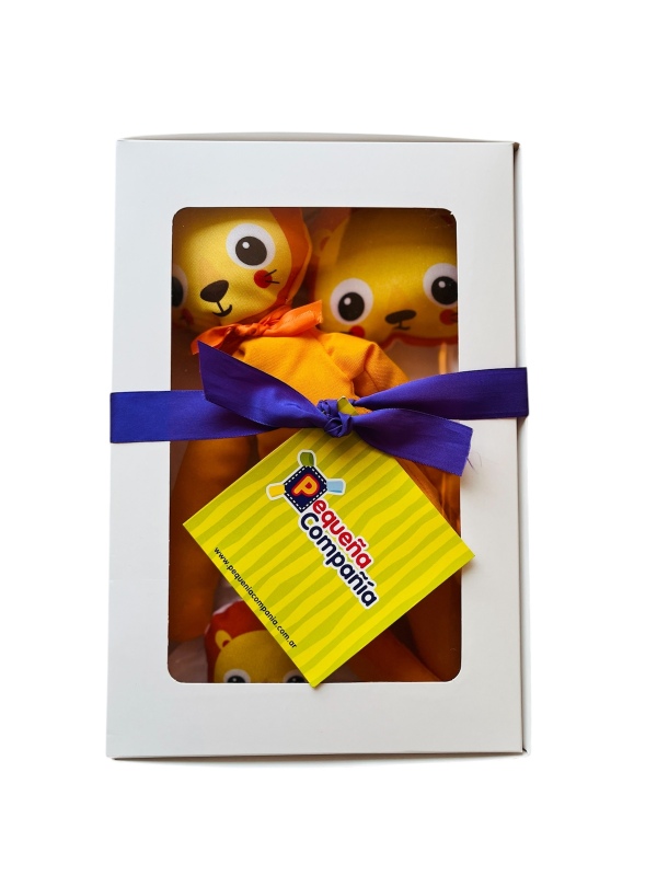 Incluye un muñeco de apego, un sonajero y un portachupete.