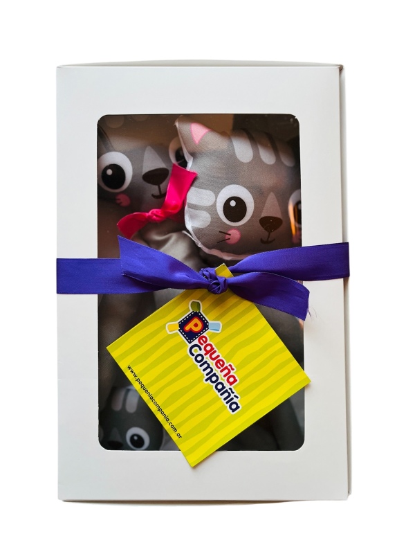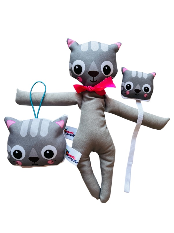 Incluye un muñeco de apego, un sonajero y un portachupete.