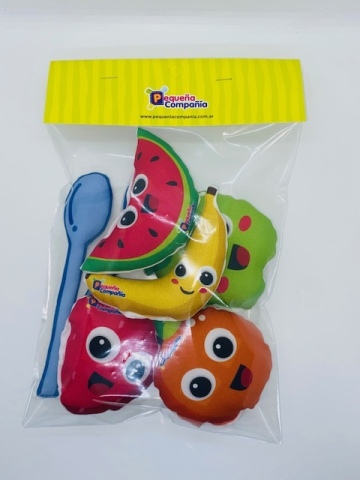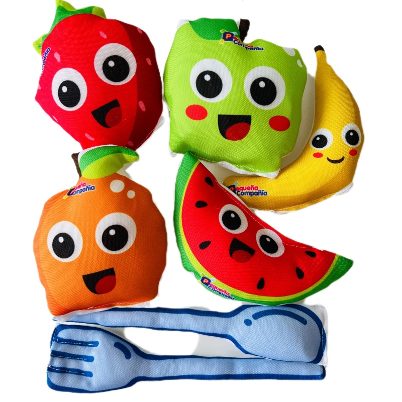 Set de frutas con sonido. incluye 5 frutas, 1 cuchara y un tenedor.