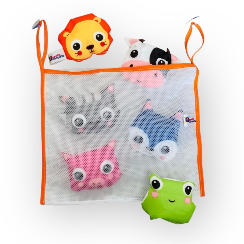 El set incluye bolsa de red e impermeable con sopapas y 6 animalitos para el agua surtidos.
